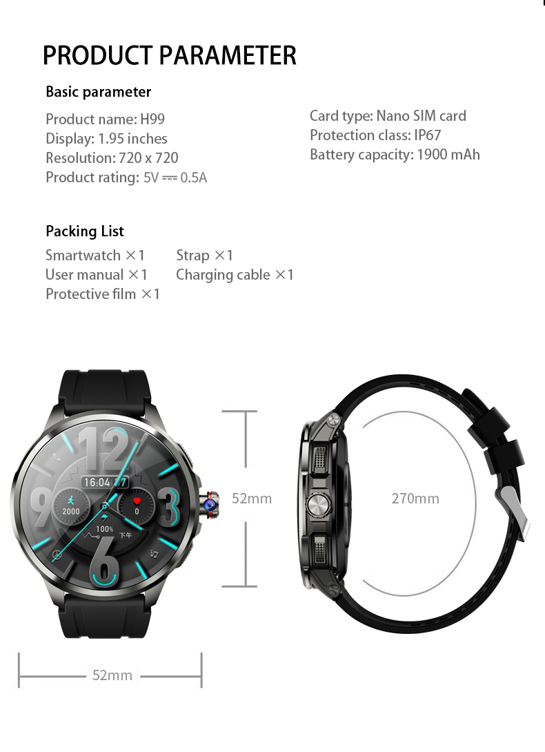 The H99 Smart Watch is a premium 4G Android-based wearable that combines smartphone-level performance with stylish design. Built with a 1.75-inch AMOLED display (466×466 resolution) and powered by the SL8541E main chip, it delivers sharp visuals and smooth operation. With 3 GB RAM + 32 GB ROM , this watch ensures seamless multitasking, app usage, and storage flexibility.